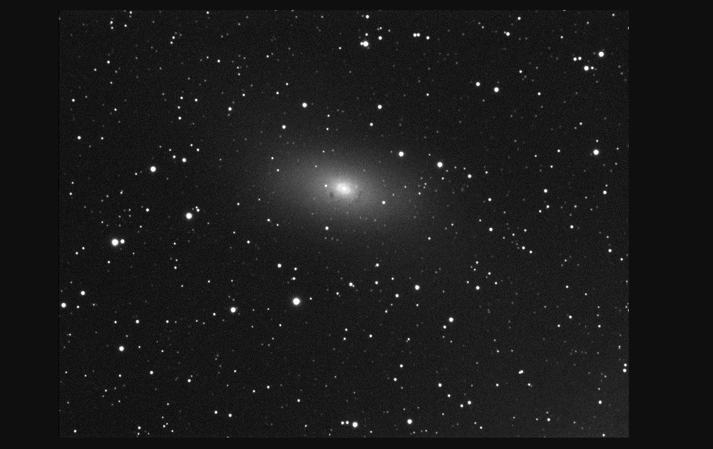 Przy okazji testów rękodzieła trzymającego system fokusujący w kupie z wyciągiem, udało mi się na 5-cio minutowej klatce luminacji złapać kilka struktur wokół jądra M110, małej siostrzyczki Mgławicy Andromedy. Chyba zasadzę się na tą niepozorną galaktyczkę na poważnie.