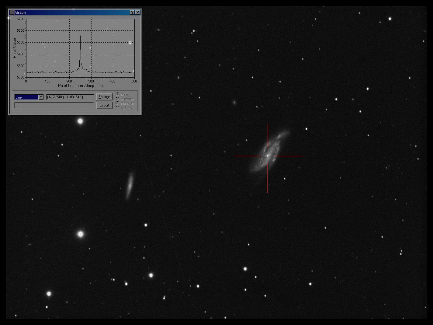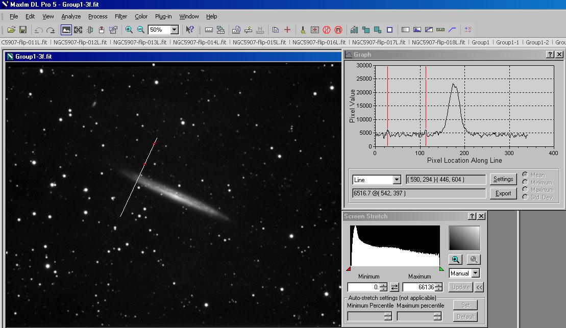 Galaktykę spiralną NGC5907, zwaną też "Drzazga" otaczają pozostałości zniszczonej galaktyki karłowatej, Ogromne pętle gwiazd i materii międzygwiezdnej otaczają ustawioną do nas kantem NGC5907, rozciągając się nawet na 150K lat świetlnych od niej. Ten niezwykły twór to upiorny szlak po którym krążą gwiazdy martwej galaktyki wokół swej nemezis. Analizując fotografię zastanawiałem się czy zdołałem zarejestrować choć cień tych struktur... Niby coś na krzywej majaczy tam gdzie powinno, ale ślad jest zbyt delikatny, zbyt blisko granicy szumu by powiedzieć: "jest, tu się zarejestrował".