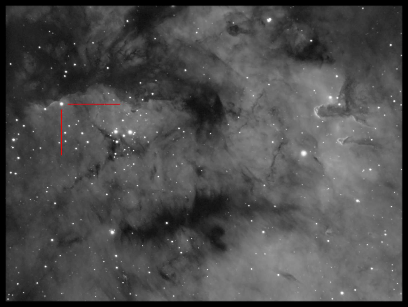 Zaznaczona na fotografii rejonu mgławicy SH2-171 gwiazda, to niezwykły obiekt. Jest to układ zaćmieniowy dwóch super-olbrzymów. Jednak to nie wszystko. W układzie tym jest najgorętsza i najjaśniejsza znana nam gwiazda - BD+66 1673. Ta gigantyczna, błękitna kula ognia ma temperaturę powierzchniową bliską 45000 stopni w skali Kelvina i jasność ponad sto tysięcy razy większą od Słońca. To ona odpowiada za to, że cała okolica SH2-171 świeci. Poniżej opracowanie AAVSO gdzie można znaleźć głębsze i bardziej naukowe podejście do uchwyconego demona i jego kumpli z B59 http://www.aavso.org/publications/ejaavso/v36n1/90.pdf