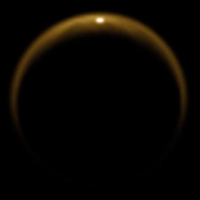 ******* Szczegółowe dane o temperaturach panujących na Tytanie dostarczył naukowcom dopiero próbnik Huygens Europejskiej Agencji Kosmicznej. Odnotowana temperatura przy powierzchni globu wynosiła -179*C. W tej temperaturze lód wodny nie może sublimować lub odparować. Oznacza to, że atmosfera jest prawie wolna od pary wodnej. Mgła w atmosferze Tytana działa na jego niekorzyść. Odbija światło słoneczne z powrotem w przestrzeń tworząc efekt anty-cieplarniany. Biorąc pod uwagę fakt, że Tytan otrzymuje tylko około 1% energii jaką otrzymuje Ziemia od Słońca, w połączeniu ze wspomnianymi właściwościami wszechobecnej, pomarańczowej mgły księżyc ten powinien być zmrożoną na kość śnieżką. Z pomocą przychodzą mu metanowe i etanowe chmury oraz rozproszone związki organiczne w niższych partiach atmosfery, wywołujące zwykły już efekt cieplarniany.